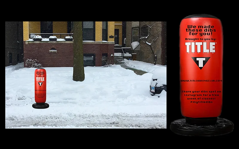 TITLE Dibs Standouts: TITLE Boxing Club will be busy on Chicago snow days, shoveling spots for Chicagoans and marking them with branded laminated cardboard standouts.